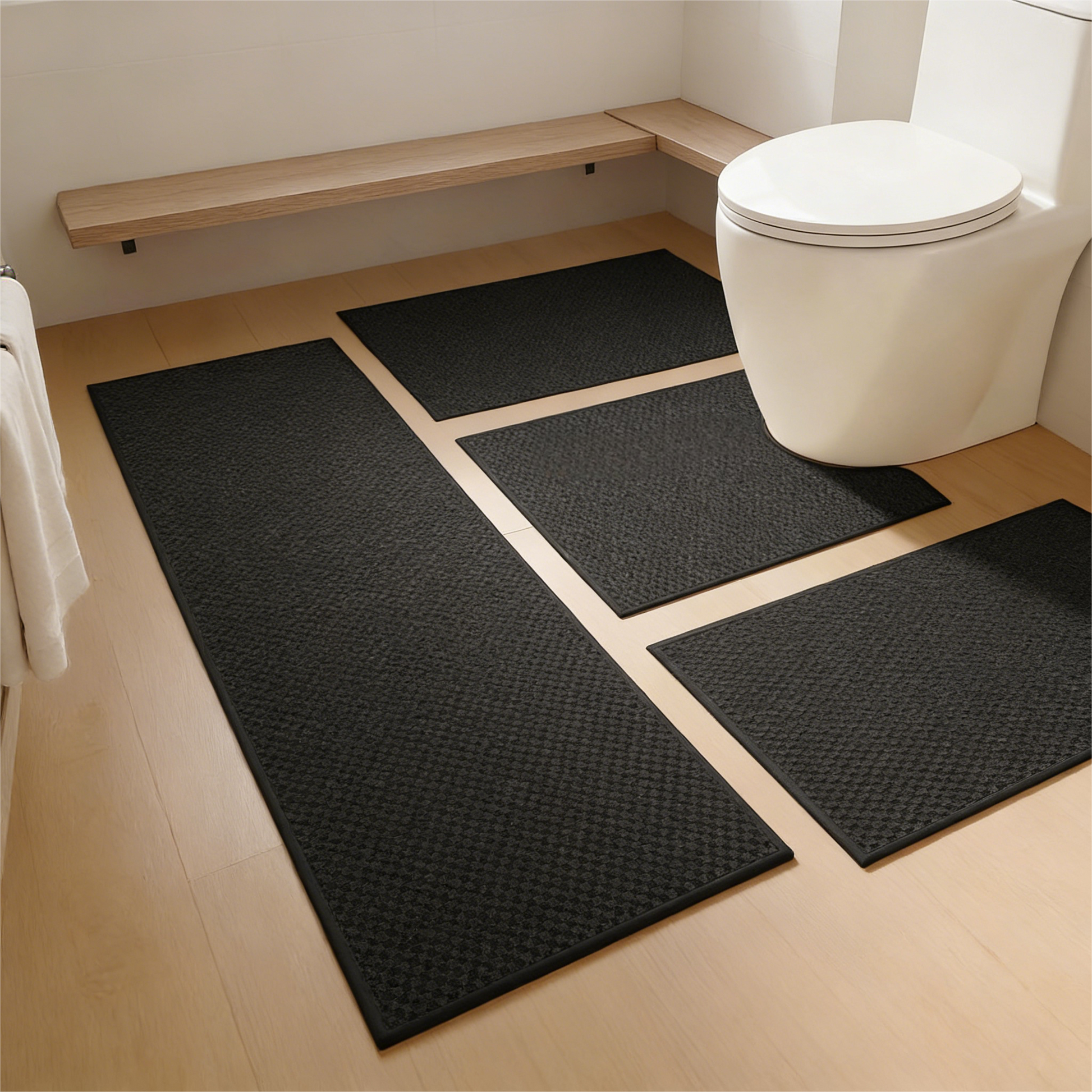 4-Piece Bath Mat Set, Ultra Thin, Non-Slip & Machine Washable